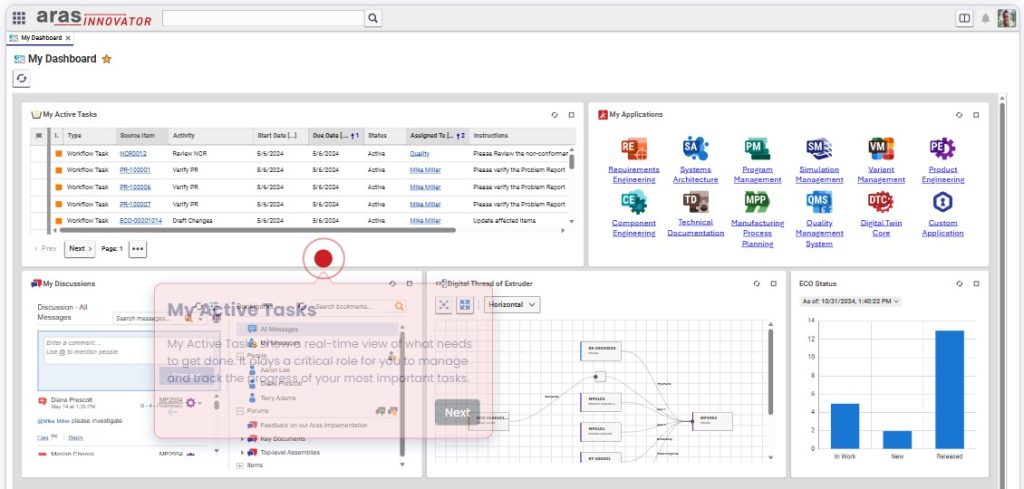 El Gemelo Digital de Aras Innovator va más allá de la simple representación CAD, ofreciendo una conexión en tiempo real con cada instancia física del producto. Captura cada cambio aplicado a lo largo del ciclo de vida, asegurando trazabilidad completa. Además, forma parte del Digital Thread, permitiendo una integración fluida entre diseño, fabricación y mantenimiento. Su enfoque innovador garantiza una visión precisa y actualizada del producto en todo momento, optimizando la toma de decisiones y reduciendo costos operativos. Una solución avanzada para la industria del futuro.